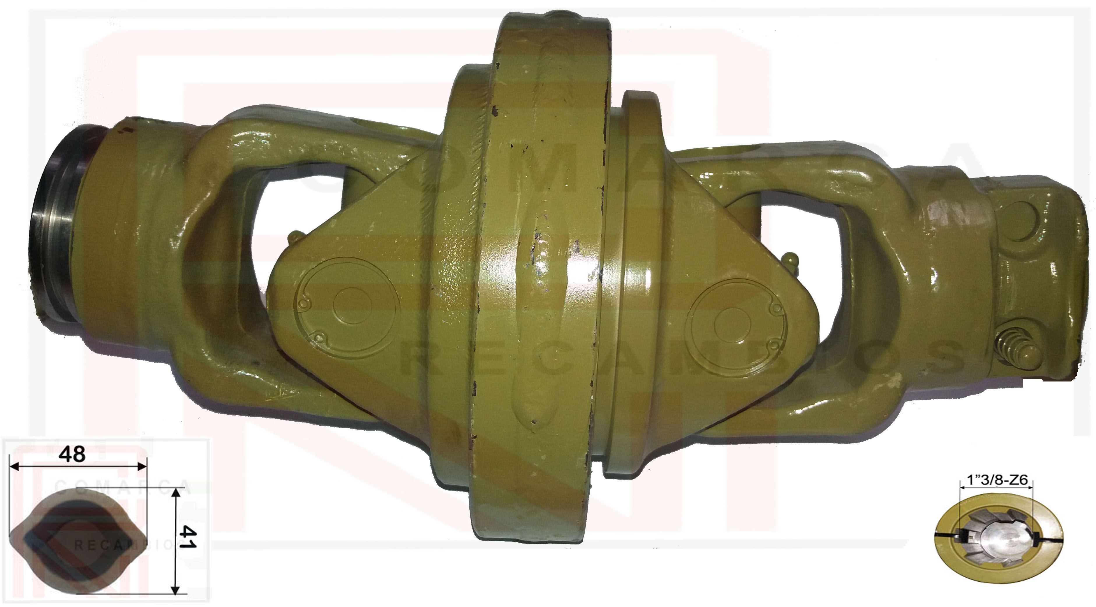 Nudo Homocinetico con cruceta 041621 (24X91 / 27X75), horquilla estriada 1"3/8-Z6 para tubo limón exterior (hembra) 04135 (41,30X48)