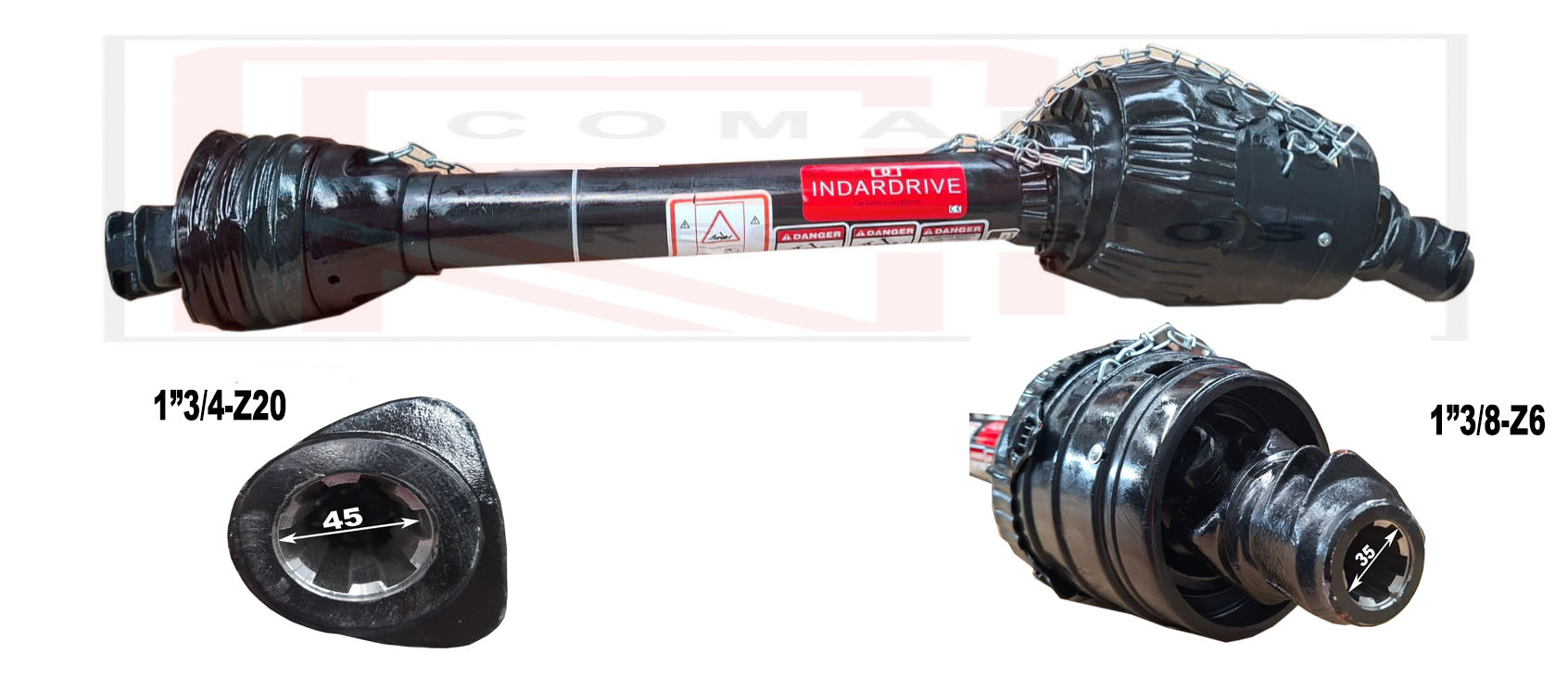 Transmisión con nudo homocinetico 1"3/4-Z20 - 1"3/8-Z6 y protección, largo 1400, cruceta 0412230 (106,30x35), tubo estrella 041R4 y 041R5