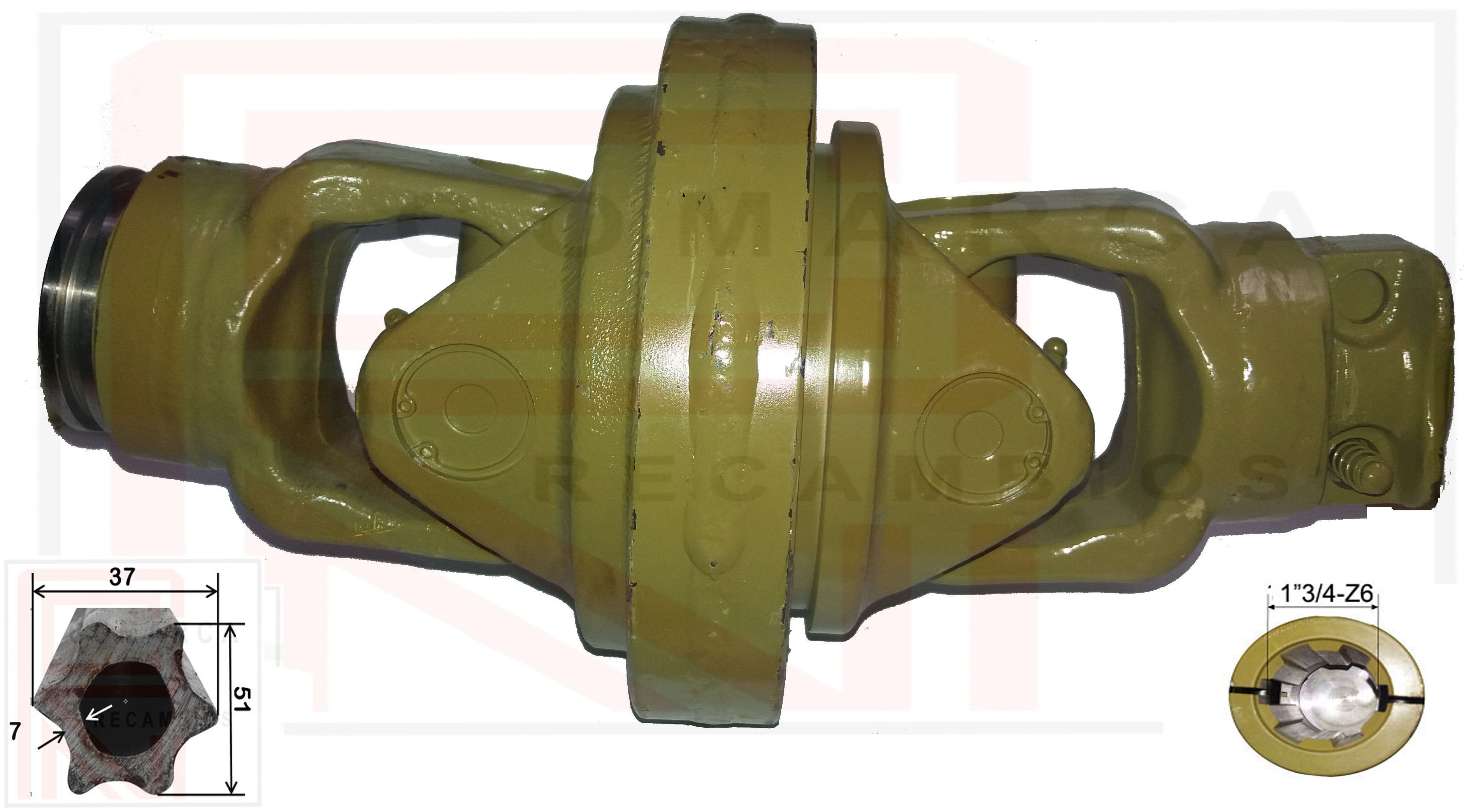 Nudo Homocinetico con cruceta 041636 (32X106 / 36X89), horquilla estriada 1"3/4-Z6 para tubo estrella interior (macho) 041R4 (51X37)