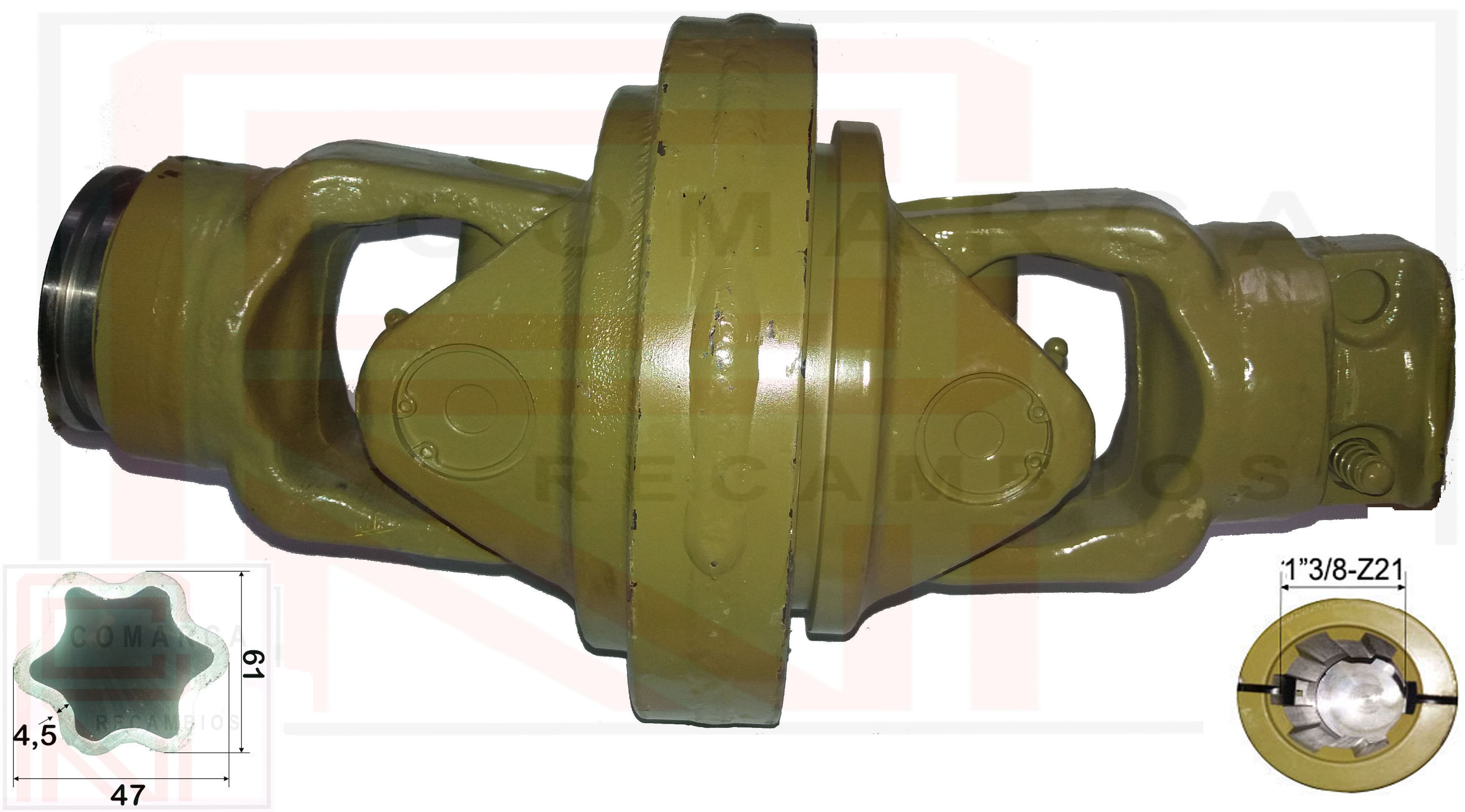 Nudo Homocinetico con cruceta 041636 (32X106 / 36X89), horquilla estriada 1"3/8-Z21 para tubo estrella exterior (hembra) 041R5 (61X47)