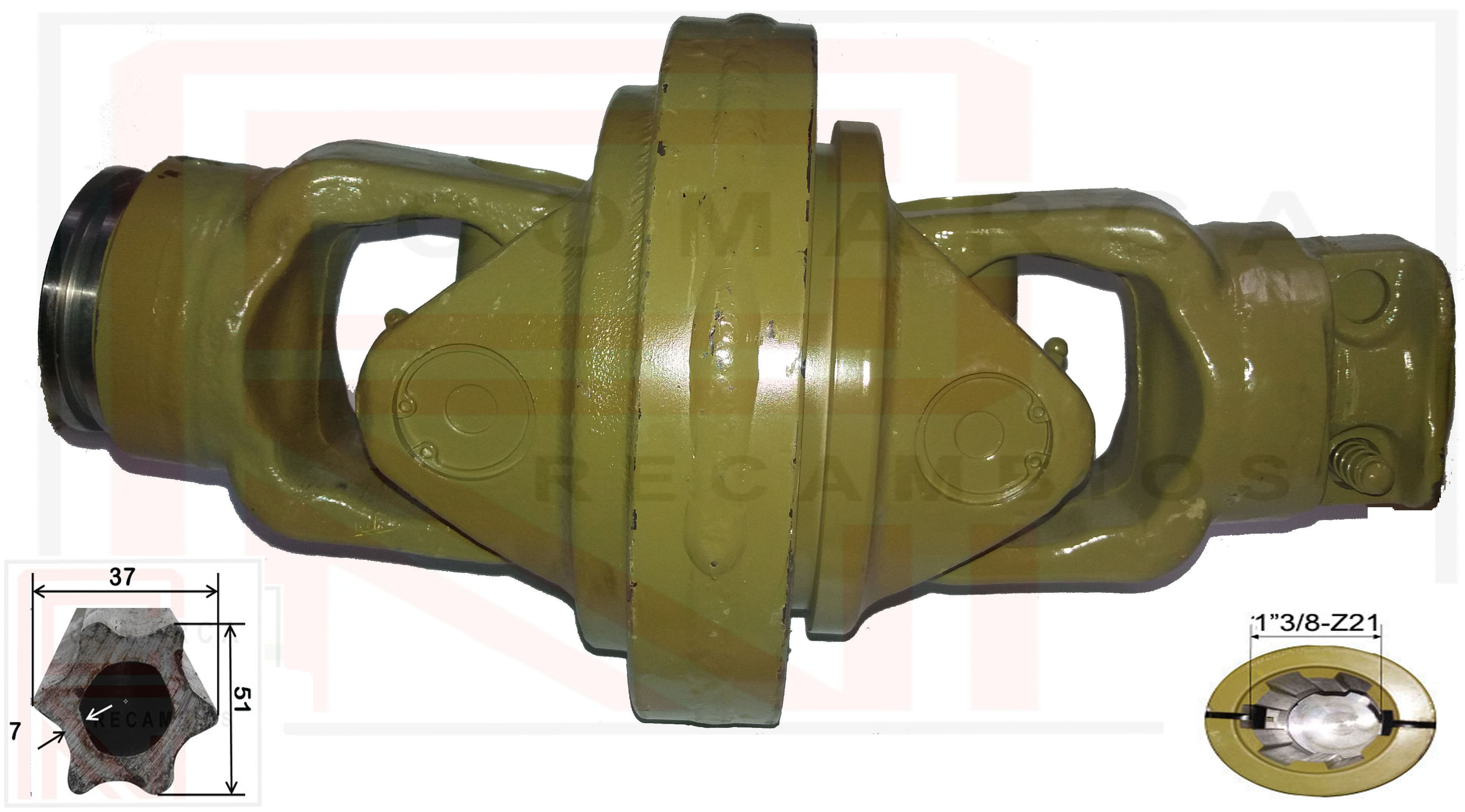 Nudo Homocinetico con cruceta 041636 (32X106 / 36X89), horquilla estriada 1"3/8-Z21 para tubo estrella interior (macho) 041R4 (51X37)