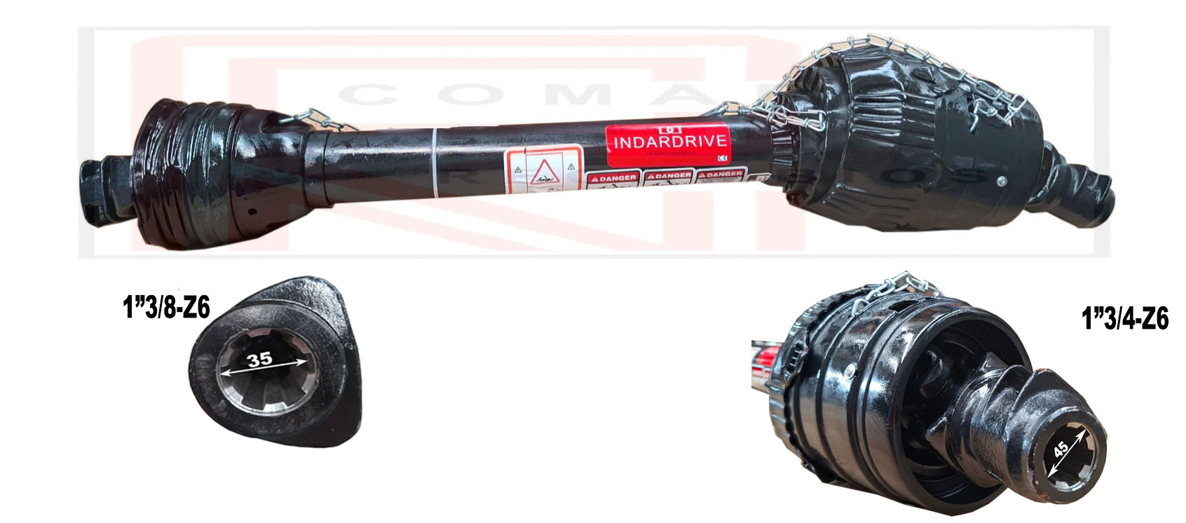Transmisión con nudo homocinetico 1"3/8-Z6 - 1"3/4-Z6 y protección, largo 1400, cruceta 0412242 (104x42), tubo estrella 041R5C y 041R6