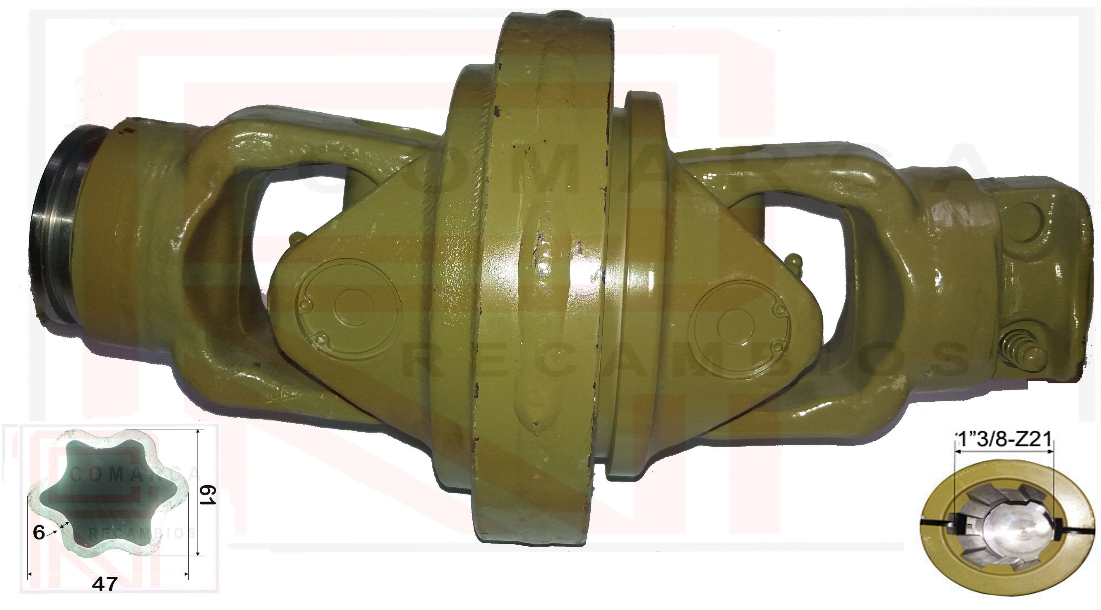 Nudo Homocinetico con cruceta 041675 (36X124 / 42X104), horquilla estriada 1"3/8-Z21 para tubo estrella interior (macho) 041R5C (61X47)