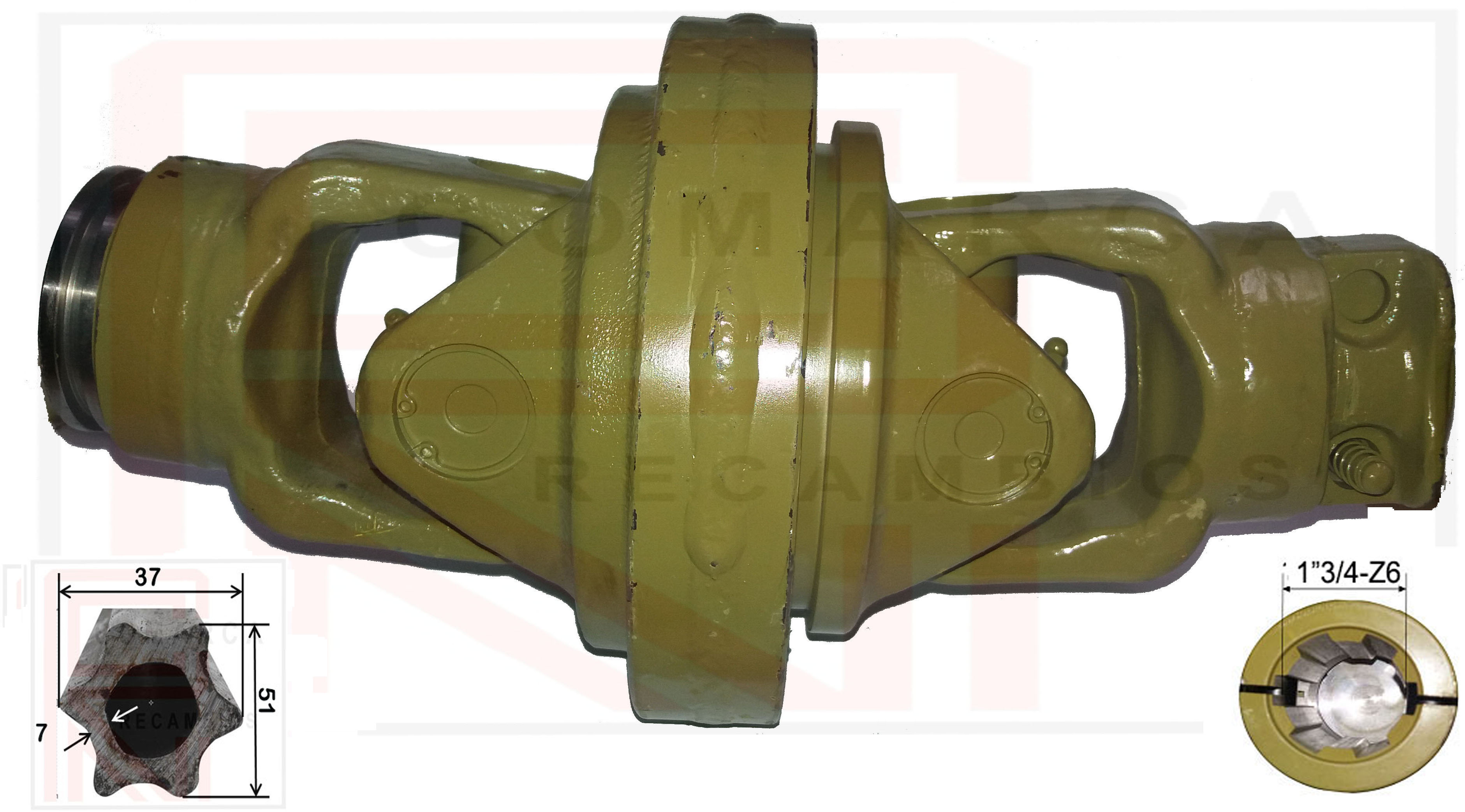 Nudo Homocinetico con cruceta 041675 (36X124 / 42X104), horquilla estriada 1"3/4-Z6 para tubo estrella interior (macho) 041R4 (51X37)