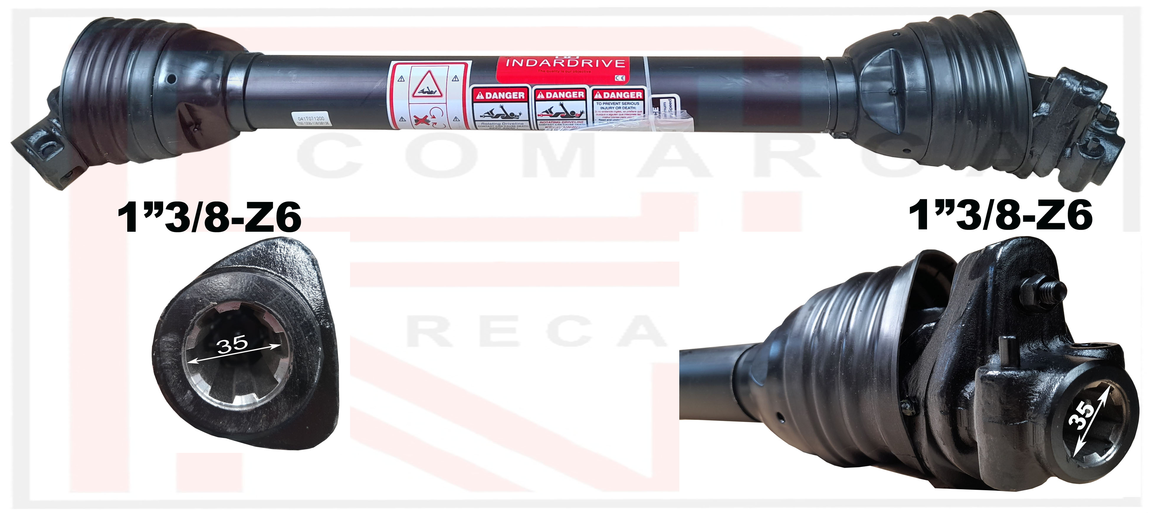 Transmision completa con limitador de fusible, estriado 1"3/8-Z6 - 1"3/8-Z6, con cruceta 0412230 (36x106,30), largo 1200 y tubo triangulo